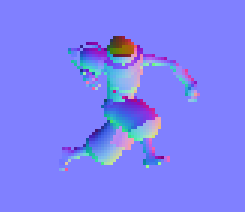 At this point, most of the work is done. We export each frame of the animation we made with the 3D skeleton to a .png, along with its normal map, allowing us to render the volume using a basic toon shader.