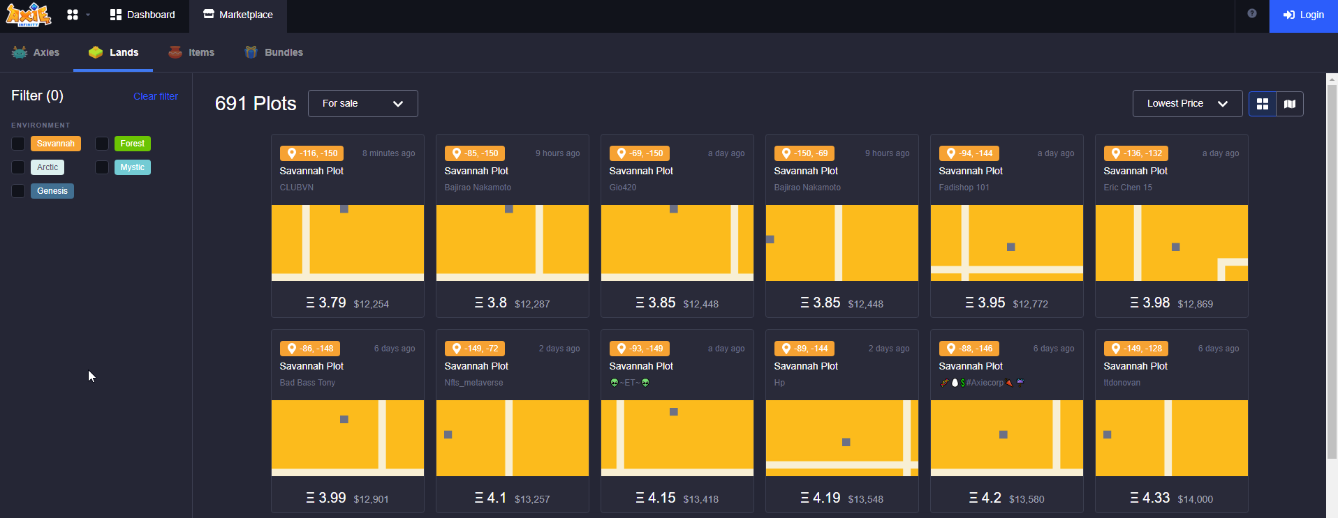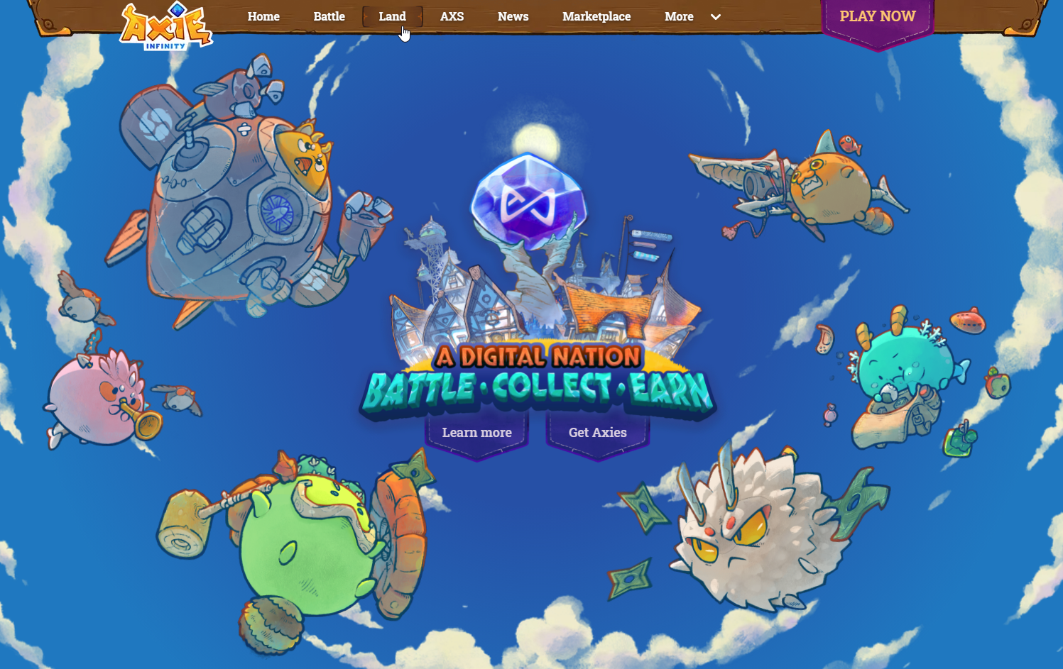 Axie Infinity is "a Pokémon-inspired universe where anyone can earn tokens through skilled gameplay and contributions to the ecosystem. Players can battle, collect, raise, and build a land-based kingdom for their pets." The game in its present state is centered on the buying and trading of non-scarce virtual creatures called "Axies" in order to battle them against each other, but future plans put a heavy focus on buying and selling scarce digital land. Though the game is still in an early phase of development, you can buy land right now: