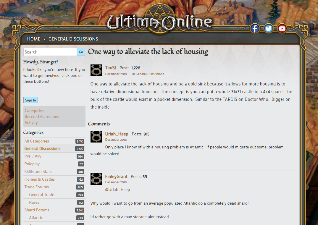 What's even more striking is that everything in this thread parallels talking points that should be familiar to anyone acquainted with the real-world housing crisis. TimSt's proposed policy– allowing houses to be bigger on the inside than the outside – is the non-Euclidean video game counterpart to up zoning for density, a policy proposed in the real world by so-called YIMBY's to repeal restrictive zoning laws that block multi-family housing, leading to more efficient land use and more housing. Uriah_Heep's suggestion for TimSt to move somewhere less crowded is met with the reply that nobody wants to move to Ultima's equivalent of rural Nebraska.