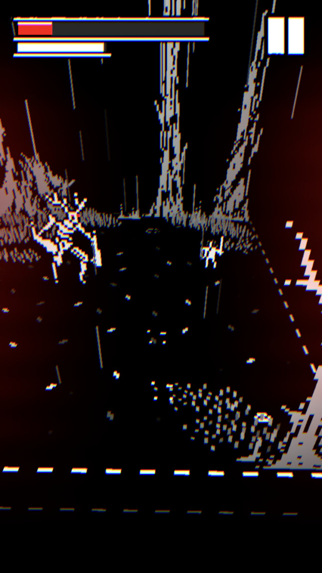 It was an organic process really. When I started prototyping I had different ideas I wanted to try. In the end I mixed two ideas and from there everything sort of "clicked". One was pure gameplay, an arena based action game on little dioramas controlled with intuitive touch controls and the other one was a 2D mockup I did with sprites and setting very similar to what I ended up using in the game. I wanted to have a heavy and dark mood that would contrast with the minimalistic graphics.